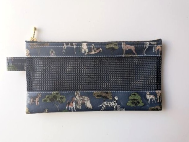 メッシュポーチ 20.5×10.5 歯ブラシケース マルチポーチ ハイドパークハウンズ リバティ ラミネート ♡ブルドッグ、ウェルシュ・テリア、ラブラドール、ダルメシアン、 ボクサー他