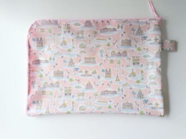 A4 L字ファスナー クリアポーチ パリスポストカード リバティ ラミネート ♡、パリの都市の魅力を繊細なスケッチで表現しています