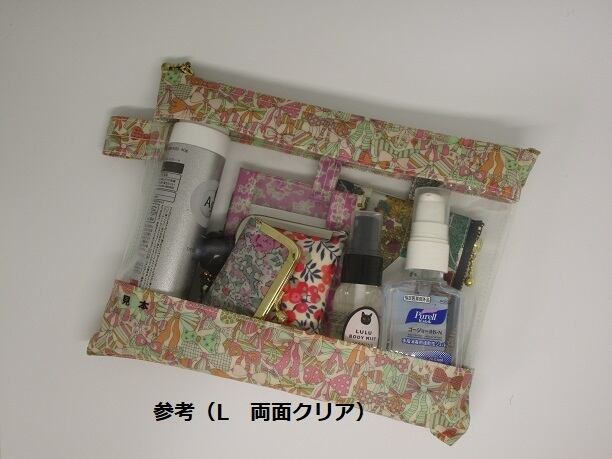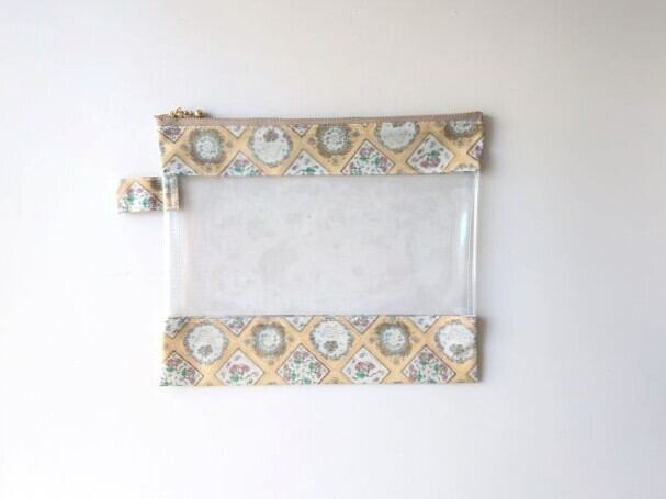 L 22×18 クリアポーチ フルールフーラード リバティ ラミネート ♡1940年代のリバティスカーフデザインを3つ組み合わせ、斜めのパッチワークレイアウトで美しく表現しました | リバティ×リバティ| 大人可愛いポーチ | オリジナルポーチ | 日本製