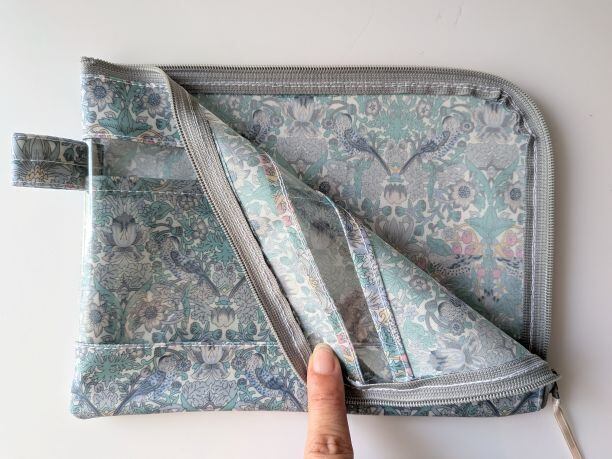 仕切り付き B6 L字ファスナー ストロベリーシーフスプリング リバティ ラミネート ♡1883年にウィリアム・モリスによりデザインされた有名なプリントを新しい解釈にした柄