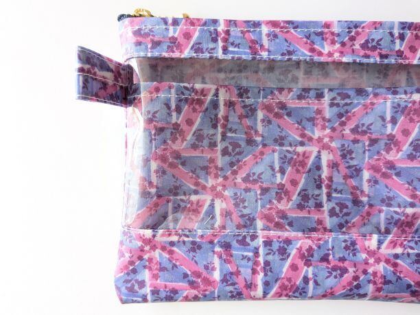 仕切り付きS-3 16.5×14 クリアポーチ フローラルフラッグ リバティ ラミネート ♡ユニオンジャックを構成する幾何学的な形からインスパイアされた抽象的なデザイン | リバティ×リバティ| 大人可愛いポーチ | オリジナルポーチ | 日本製
