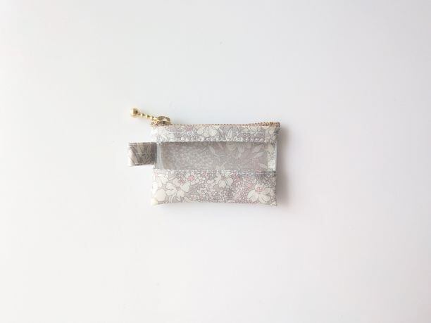 xxxs-3 9×5.5 クリアポーチ パトリックゴードン リバティ ラミネート ♡「Margaret Annie (マーガレット・アニー)」をポプリン向けとして単色風に描きなおした柄 | リバティ×リバティ| 大人可愛いポーチ | オリジナルポーチ | 日本製