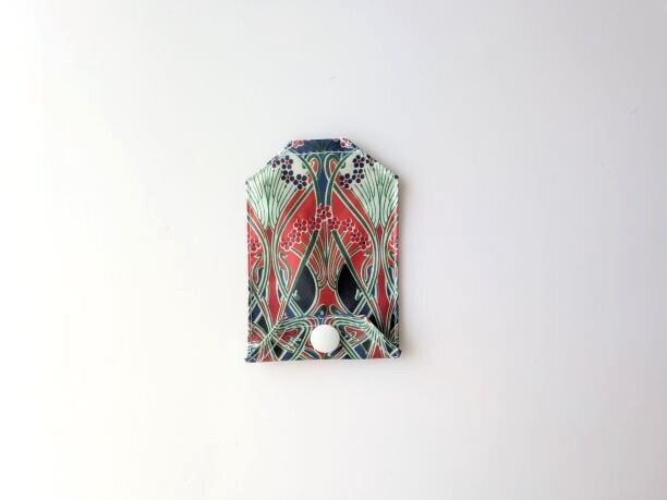 リバティプリントの生地を両面に使用し、ラミネートで仕立てたお守りケースをご用意しました。