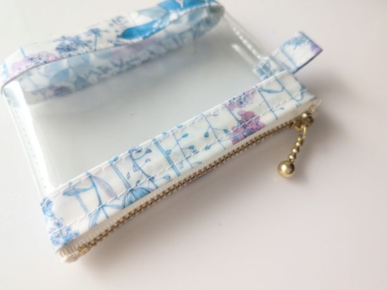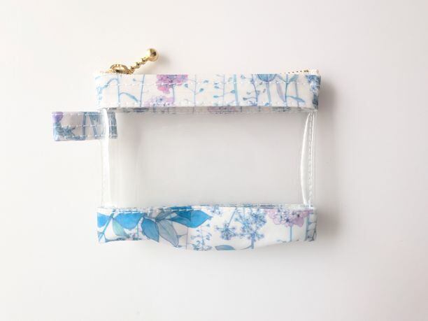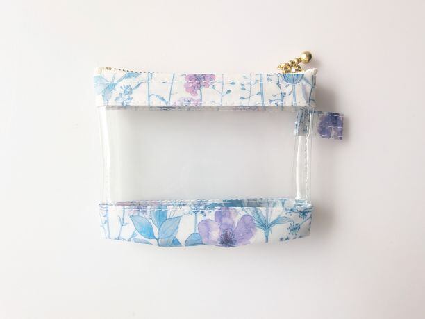 xxs カードサイズ クリアポーチ イルマ リバティ クリアポーチ お薬入れ ♡ユーフォルビア、ポピー、アストランティア、イベリスの花々が優しくどことなく幻想的な草原を創り出します | リバティ×リバティ| 大人可愛いポーチ | オリジナルポーチ | 日本製