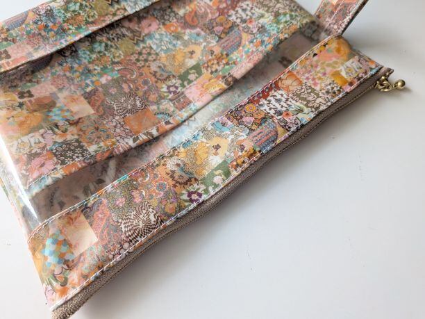 仕切り付きL-3 22×18 クリアポーチ アーカイブパッチワーク リバティ ラミナート ♡伝統的なペイズリーからモダンなジオメトリック、シグネチャーの花柄まで、57のデザインがそれぞれユニークな瞬間を表現 | リバティ×リバティ| 大人可愛いポーチ | オリジナルポーチ | 日本製