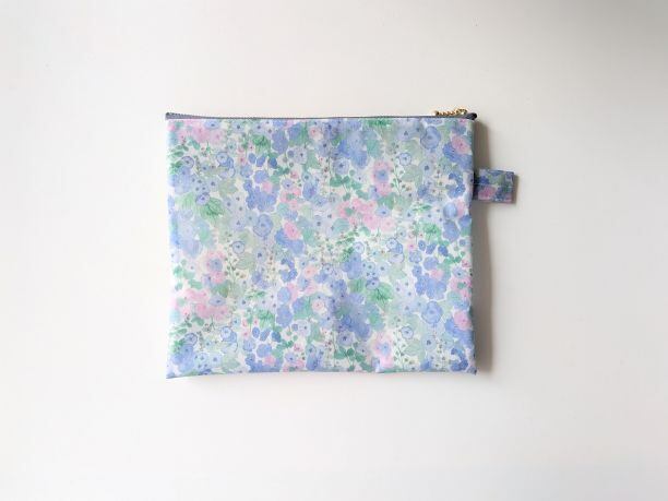 L-3 22×18 クリアポーチ ホリーホックス リバティ ラミネート ♡典型的なイングリッシュガーデンに咲く沢山のタチアオイからインスピレーションを受け水彩で描かれました | リバティ×リバティ| 大人可愛いポーチ | オリジナルポーチ | 日本製