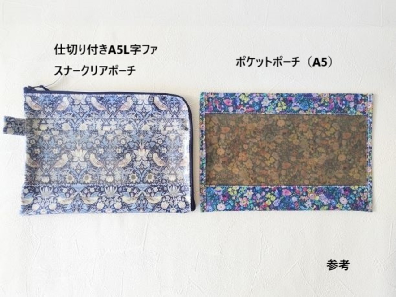 この生地はリバティのラミネートよりもやや固めでしっかりしており、大切な物をしっかり守るのに適しています。