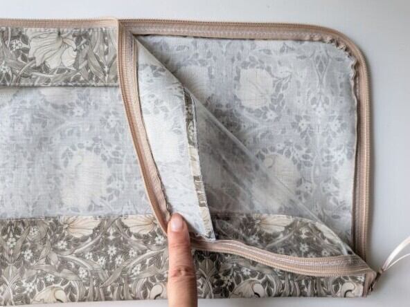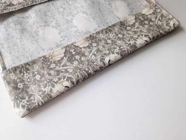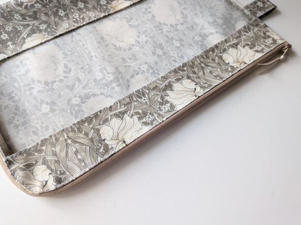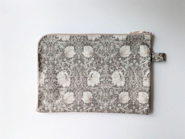 この生地はリバティのラミネートよりもやや固めでしっかりしており、大切な物をしっかり守るのに適しています。