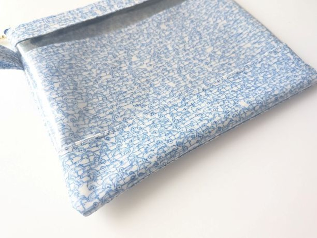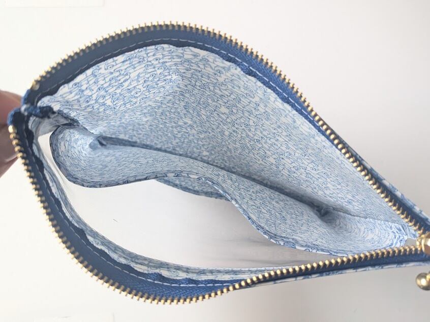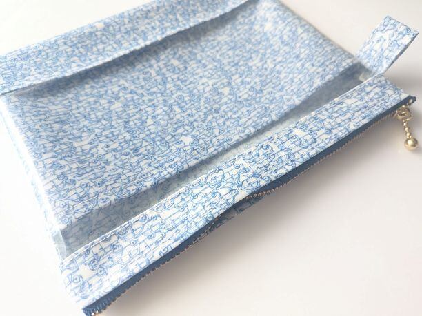 仕切りつきM-3 18.5×15 クリアポーチ ラッシュアワー リバティ ラミネート ♡「カーズ」にインスパイアされたデザイン | リバティ×リバティ| 大人可愛いポーチ | オリジナルポーチ | 日本製