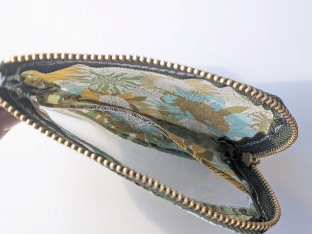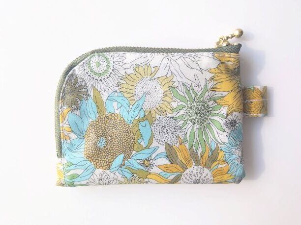 仕切り付きA7 L字ファスナー クリアポーチ スモールスザンナ リバティ ラミネート カードサイズ ♡大小さまざまなひまわり | リバティ×リバティ| 大人可愛いポーチ | オリジナルポーチ | 日本製