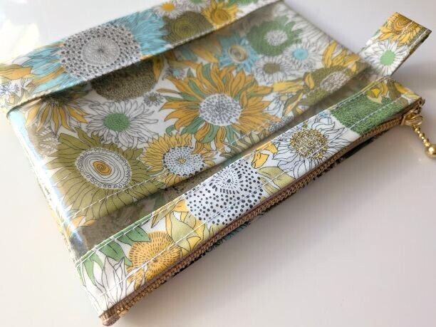 仕切り付きS-3 16.5×14 クリアポーチ スモールスザンナ リバティ ラミネート ♡大小さまざまなひまわり