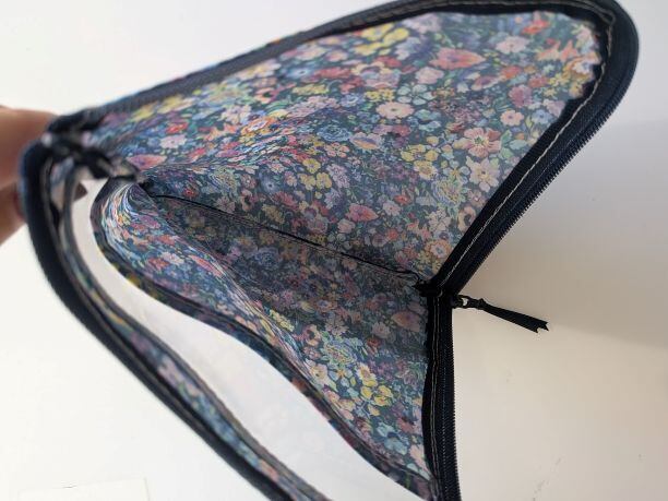 仕切付きXS L字ファスナー クリアポーチ クラシックガーデン リバティ ラミネート ♡リバティで最も有名で愛されている定番柄の見事な饗宴です | リバティ×リバティ| 大人可愛いポーチ | オリジナルポーチ | 日本製
