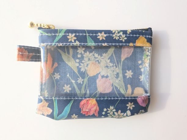 xxs-3 カードサイズ クリアポーチ スプリングブルームス リバティ ラミネート ♡ポピー、チューリップ、オニユリ、野ニラなどの花々が、春の到来を告げ、祝福しています | リバティ×リバティ| 大人可愛いポーチ | オリジナルポーチ | 日本製