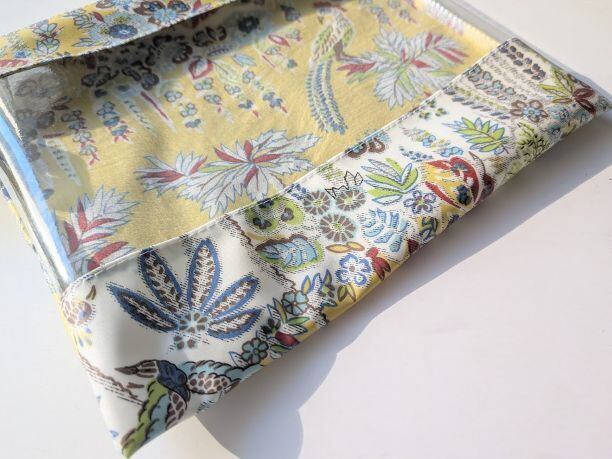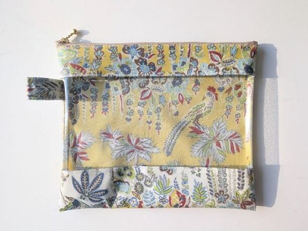 L-3 22×18 クリアポーチ エイヴィリーペイズリー リバティ ラミネート ♡熱帯のヤシの木、羽のような葉、幻想的な花々が細部に至るまで精巧に描かれています | リバティ×リバティ| 大人可愛いポーチ | オリジナルポーチ | 日本製