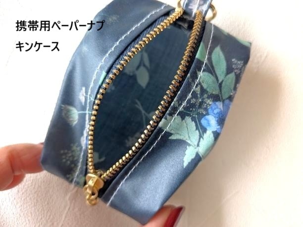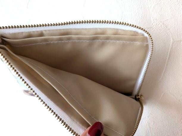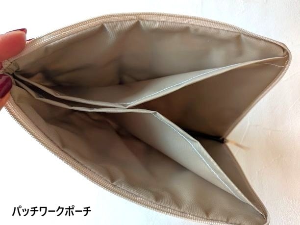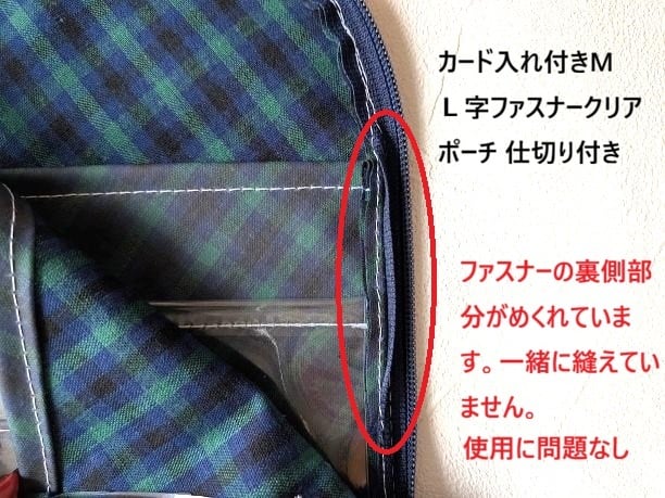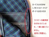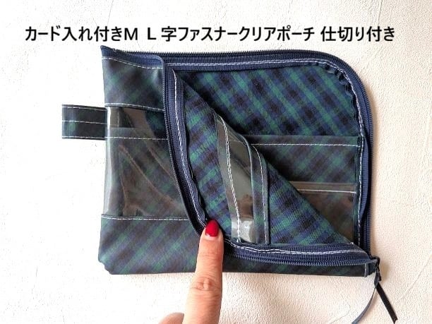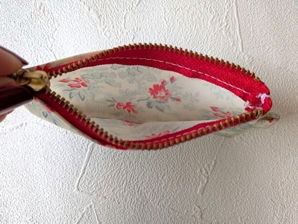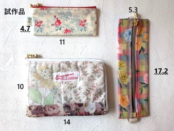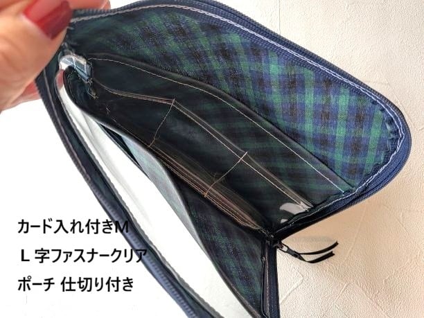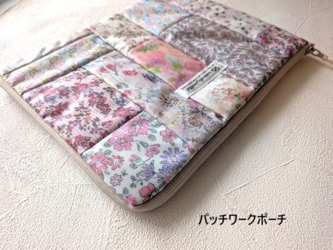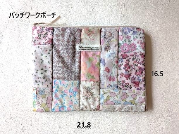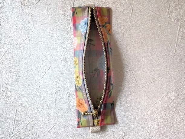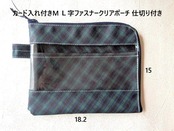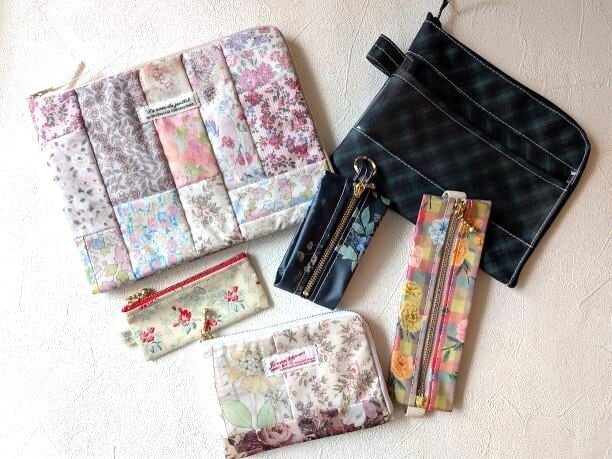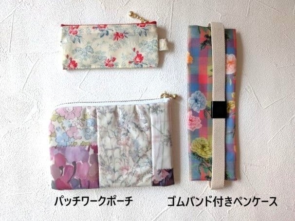 リバティプリントとチェック柄のラミネート生地のポーチ