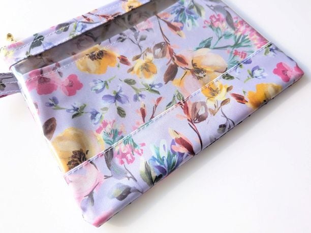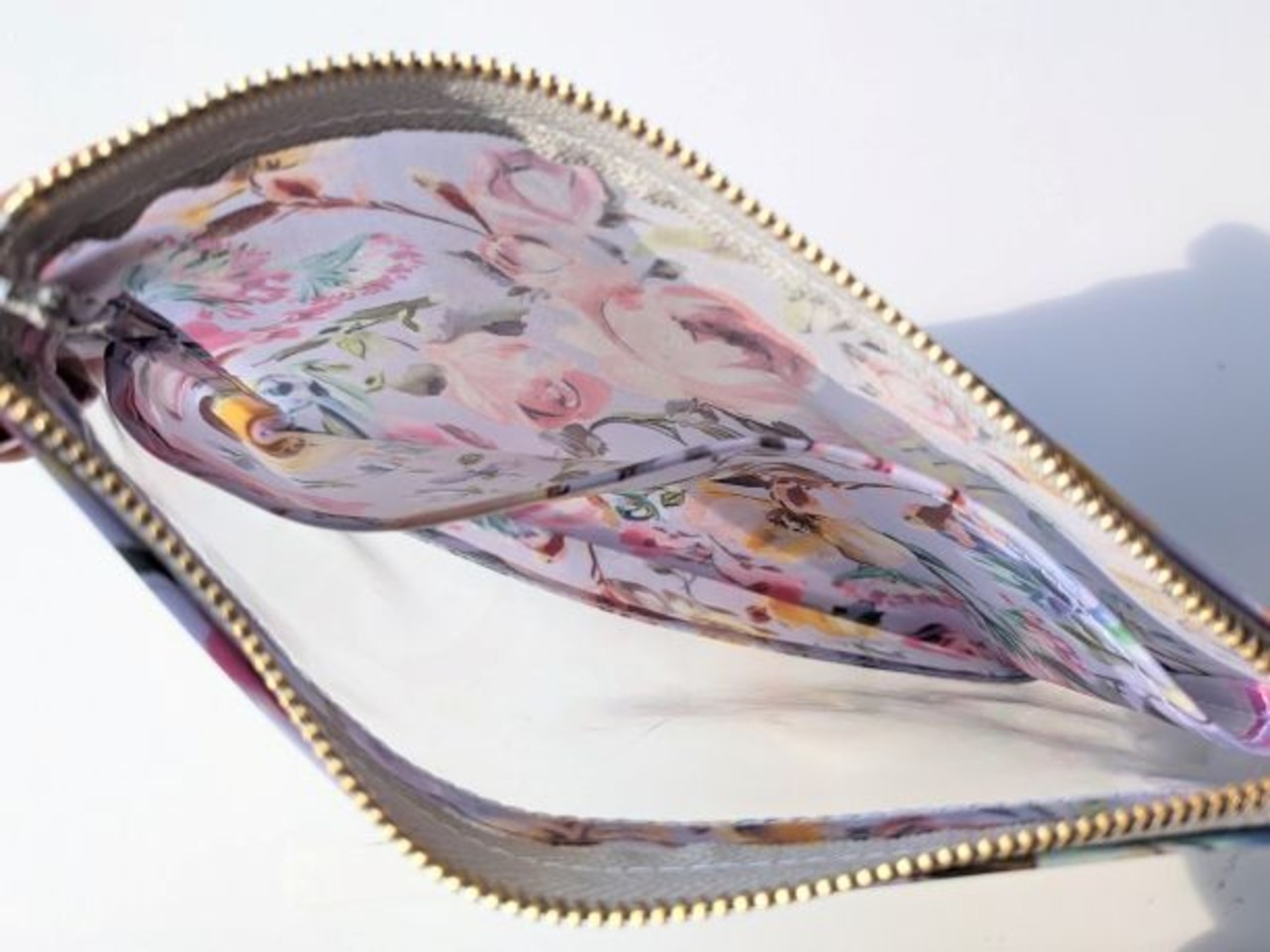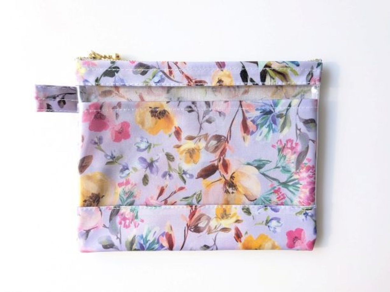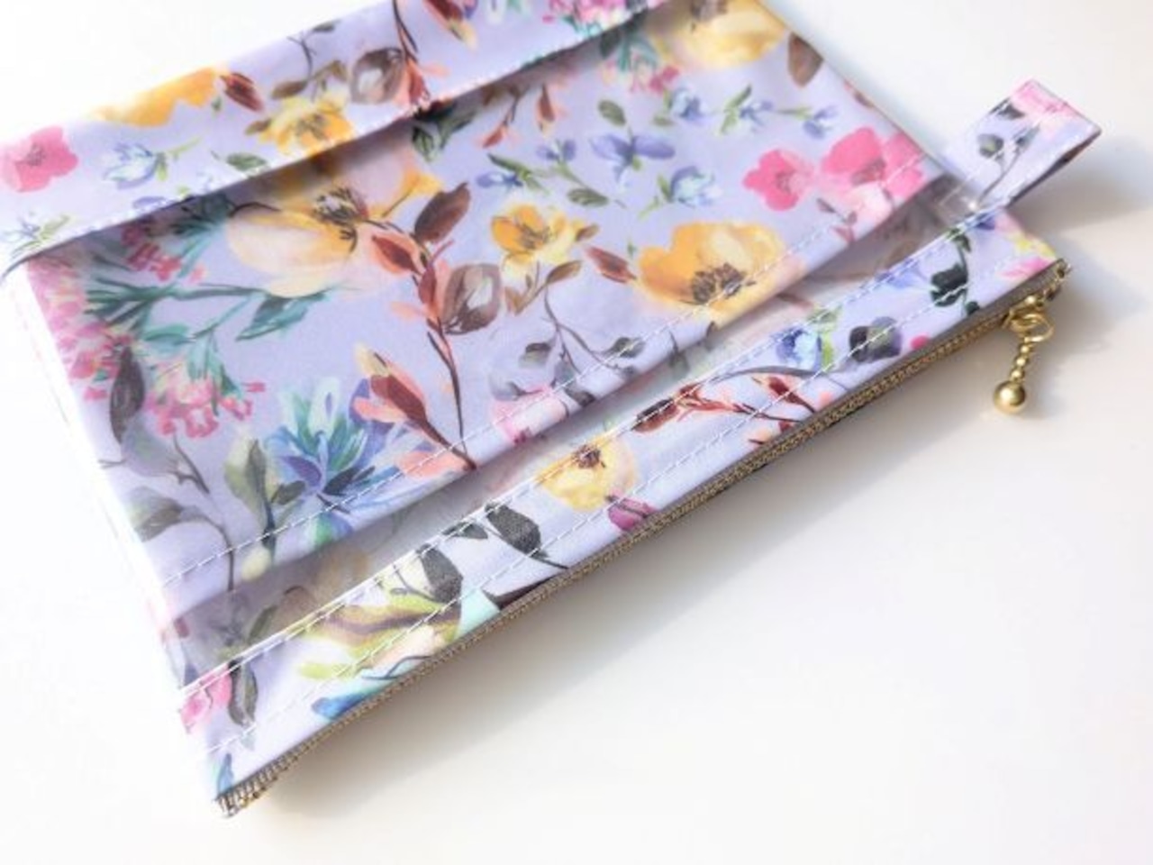 仕切りつきM-3 18.5×15 クリアポーチ プロムナード リバティ ラミネート ♡色とりどりの花々が鮮やかに咲き誇り、色彩、質感、そして動きが織りなす美しいハーモニーを奏でます | リバティ×リバティ| 大人可愛いポーチ | オリジナルポーチ | 日本製