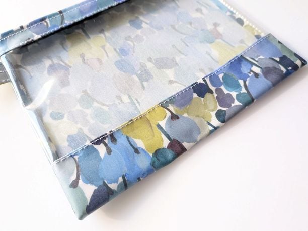 M-3 18.5×15 クリアポーチ チューリップフィールズ リバティ ラミネート ♡重ねられた色に茎を書き加え、ダンスをしているようなチューリップへと変換されました | リバティ×リバティ| 大人可愛いポーチ | オリジナルポーチ | 日本製