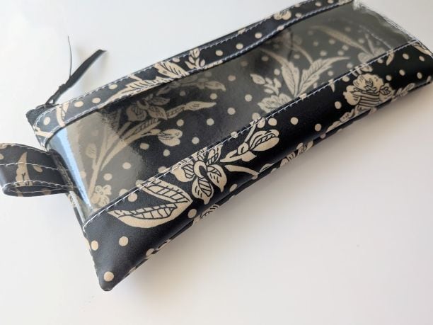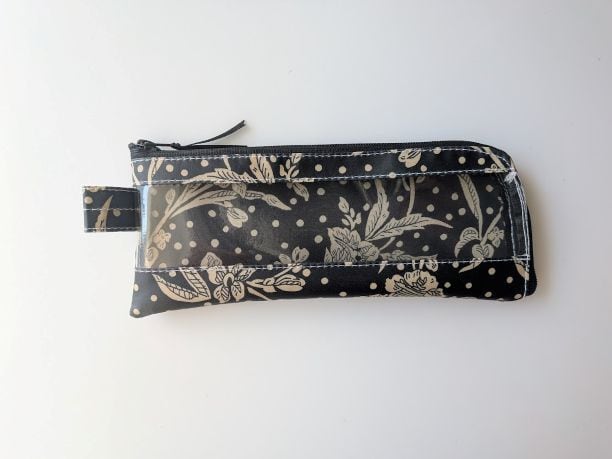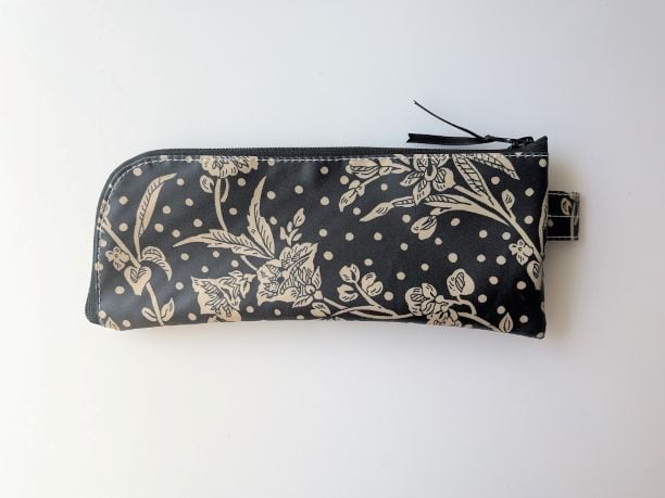 ペンケース 歯ブラシケース L字ファスナー マロリー リバティ ラミネート ♡水玉のベースデザインに手描きで、東洋の花々が上に向かってレイアウトされた柄 | リバティ×リバティ| 大人可愛いポーチ | オリジナルポーチ | 日本製