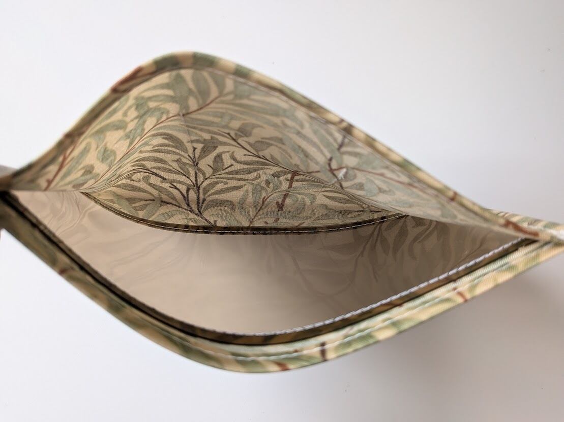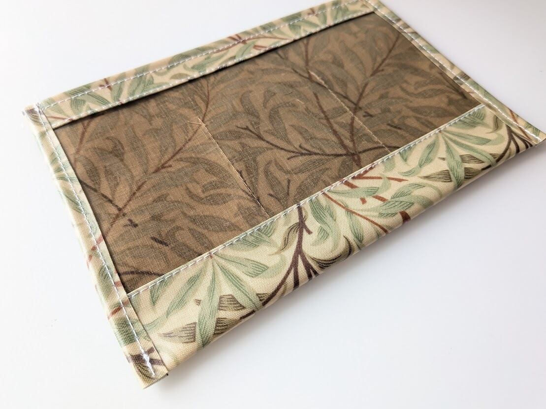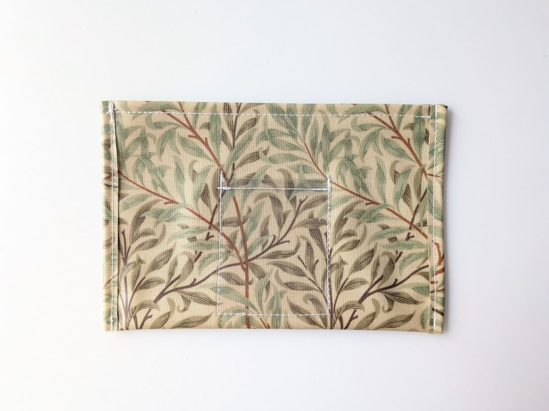 この生地はリバティのラミネートよりもやや固めでしっかりしており、大切な物をしっかり守るのに適しています。