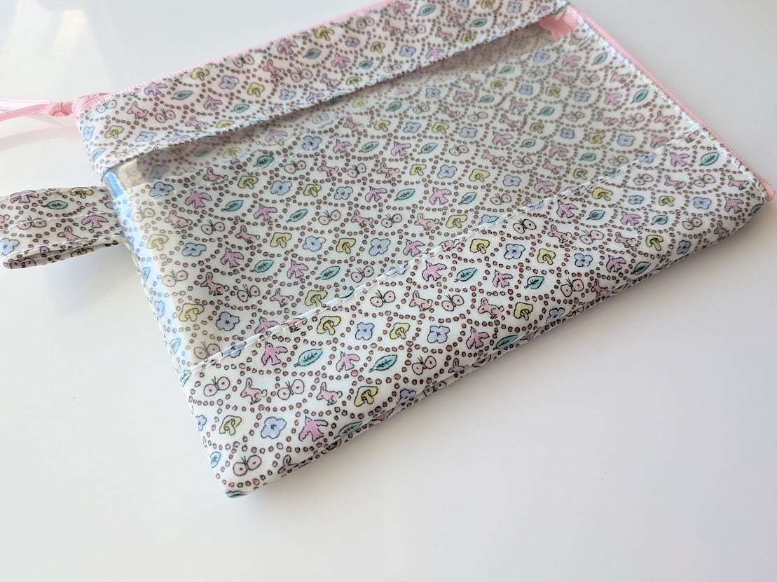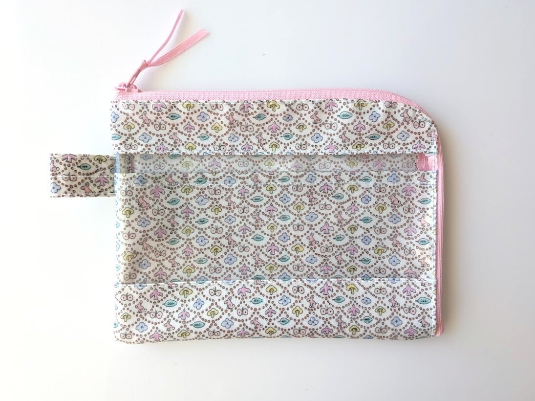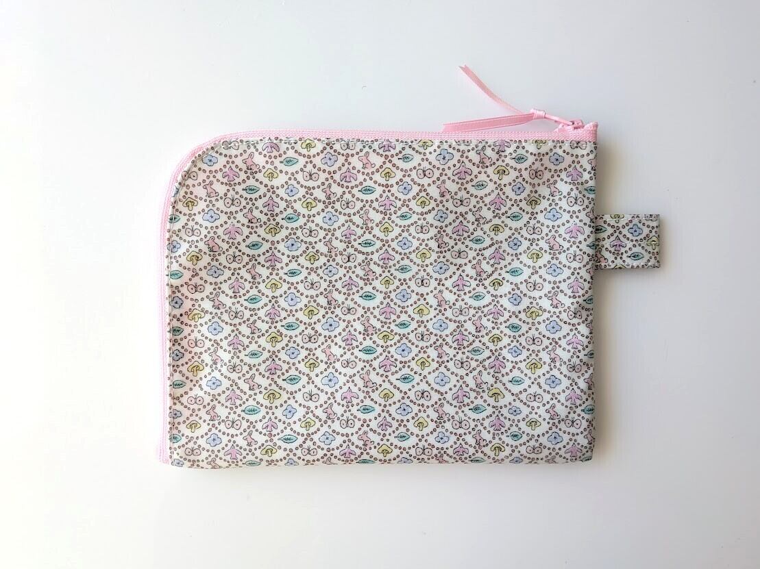 仕切り付きA6 L字ファスナー お薬手帳 クリアポーチ フォレストウェーブ リバティ ラミネート ♡ミナ ペルホネンとのコラボレーション | リバティ×リバティ| 大人可愛いポーチ | オリジナルポーチ | 日本製
