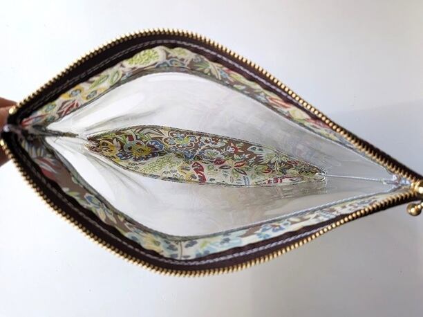 L 22×18 クリアポーチ エイヴィリーペイズリー リバティ ラミネート ♡熱帯のヤシの木、羽のような葉、幻想的な花々が細部に至るまで精巧に描かれています