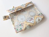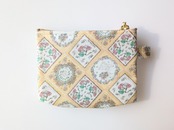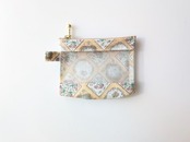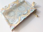 xxs-3 カードサイズ クリアポーチ フルールフーラード リバティ ラミネート ♡1940年代のリバティスカーフデザインを3つ組み合わせ、斜めのパッチワークレイアウトで美しく表現しました