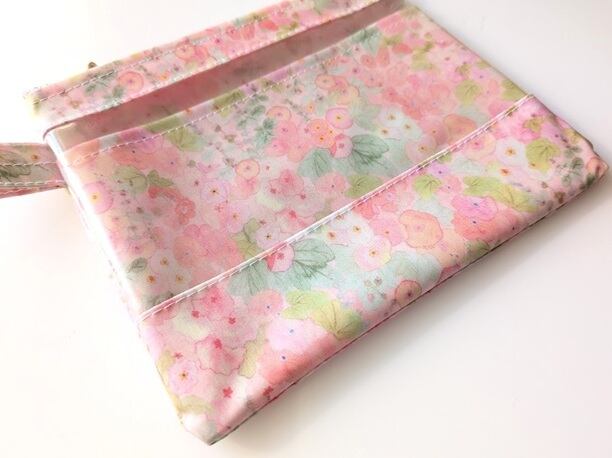 仕切り付きS-3 16.5×14 クリアポーチ ホリーホックス リバティ ラミネート ♡典型的なイングリッシュガーデンに咲く沢山のタチアオイからインスピレーションを受け水彩で描かれました