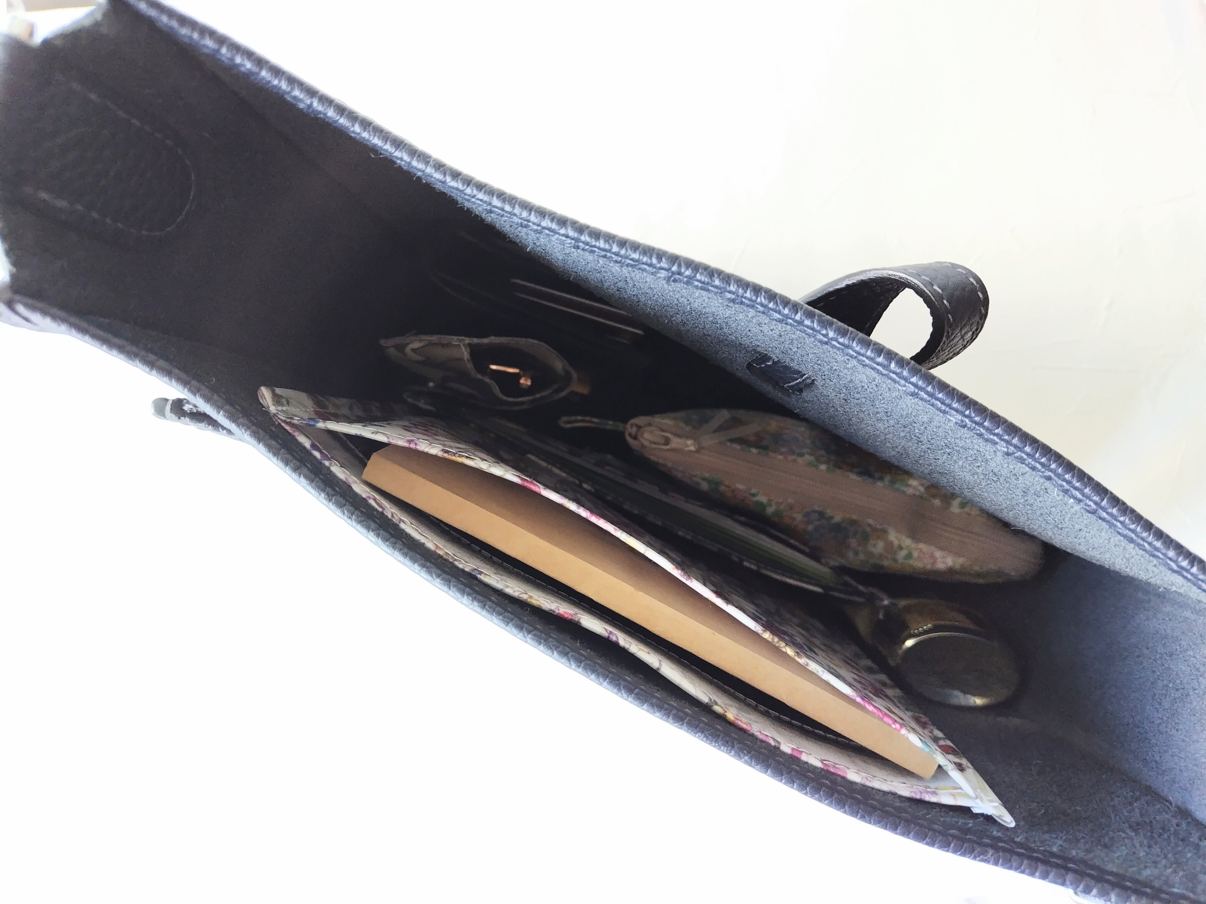 手帳やノート、本を入れてもOK。バッグの中でページが開くこともなく、大切に持ち運べます。