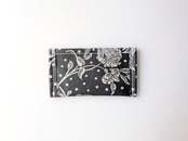 【数量限定】ポケットポーチ カードサイズ マロリー リバティ ラミネート ♡水玉のベースデザインに手描きで、東洋の花々が上に向かってレイアウトされた柄