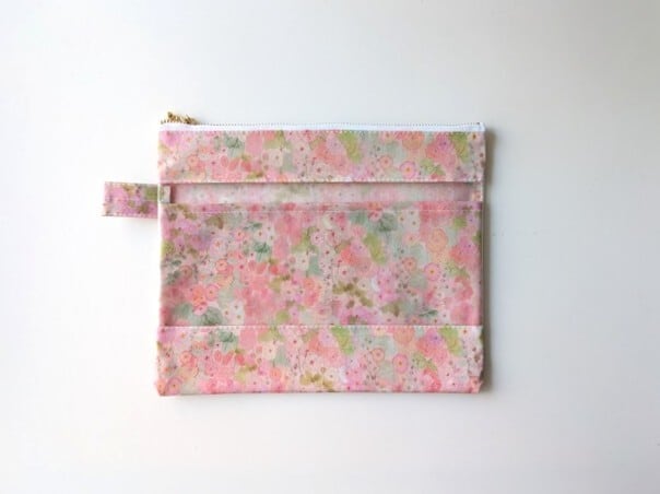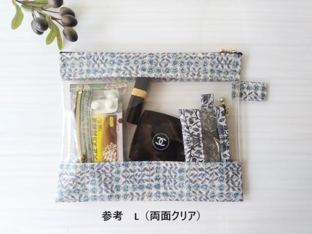 仕切り付きL-3 22×18 クリアポーチ ホリーホックス リバティ ラミナート ♡典型的なイングリッシュガーデンに咲く沢山のタチアオイからインスピレーションを受け水彩で描かれました | リバティ×リバティ| 大人可愛いポーチ | オリジナルポーチ | 日本製