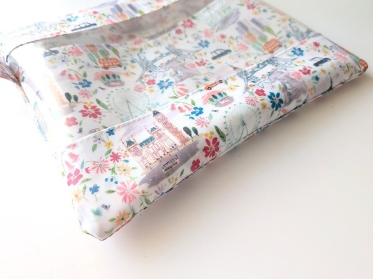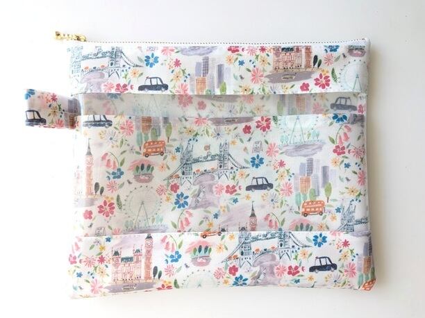 仕切り付きL-3 22×18 クリアポーチ プライドアンドブルーム リバティ ラミナート ♡ロンドンの街を象徴する風景を表情豊かなインクのスケッチで表現し、街の生活を魅力的に描いた柄 | リバティ×リバティ| 大人可愛いポーチ | オリジナルポーチ | 日本製
