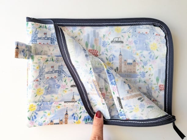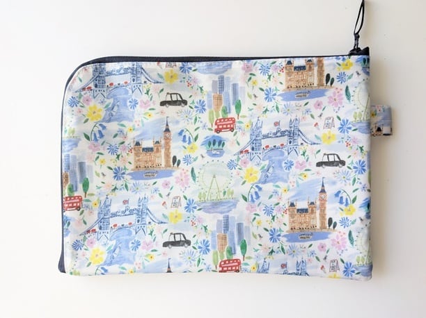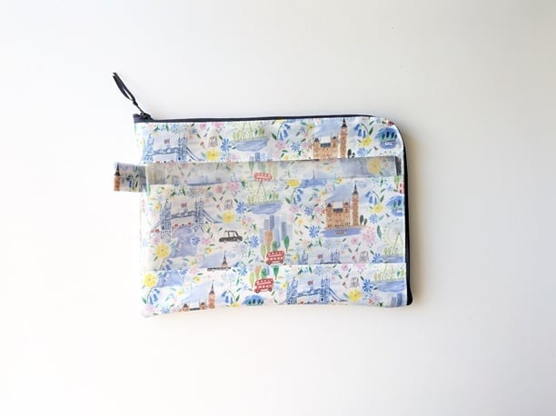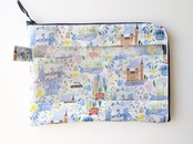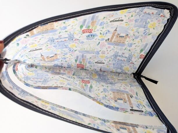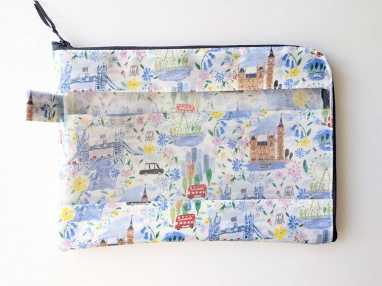 切り付き A5 L字ファスナー プライドアンドブルーム リバティ ラミネート ♡ロンドンの街を象徴する風景を表情豊かなインクのスケッチで表現し、街の生活を魅力的に描いた柄 | リバティ×リバティ| 大人可愛いポーチ | オリジナルポーチ | 日本製