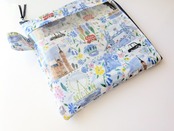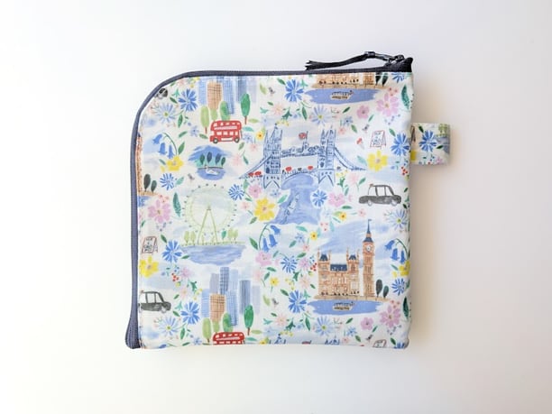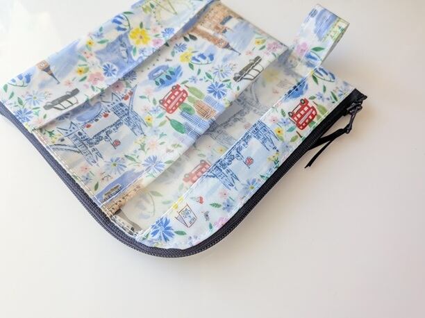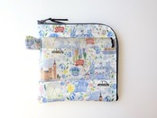 仕切付きXS L字ファスナー クリアポーチ プライドアンドブルーム リバティ ラミネート ♡ロンドンの街を象徴する風景を表情豊かなインクのスケッチで表現し、街の生活を魅力的に描いた柄 | リバティ×リバティ| 大人可愛いポーチ | オリジナルポーチ | 日本製