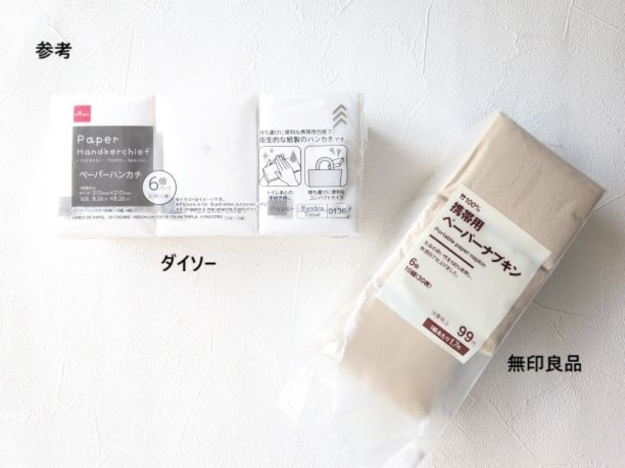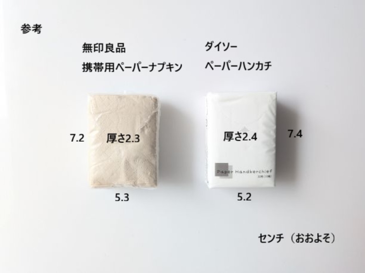 無印良品の「携帯用ペーパーナプキン」や、ダイソーの「ペーパーハンカチ」が入ります。