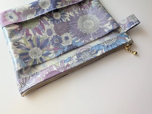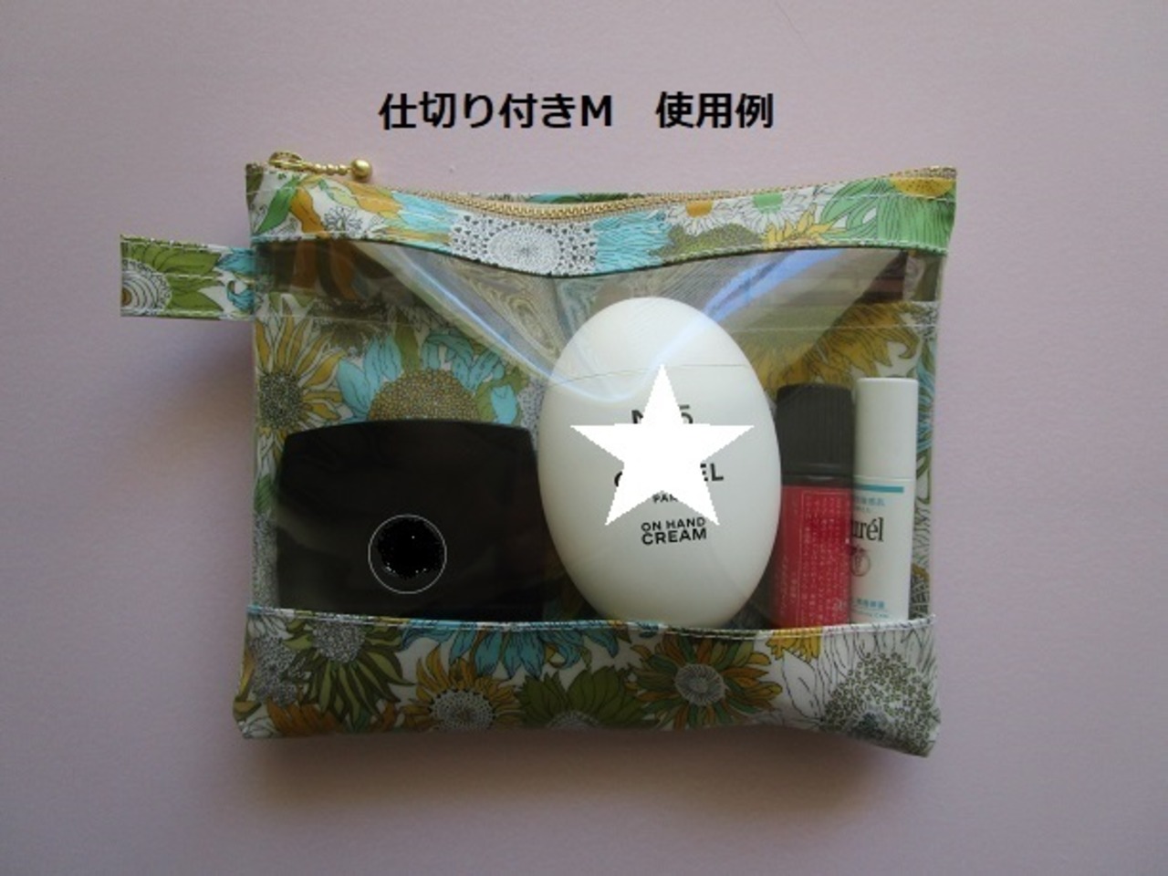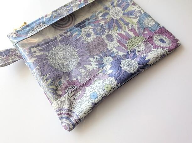 仕切りつきM-3 18.5×15 クリアポーチ スモールスザンナ リバティ ラミネート ♡大小さまざまなひまわり