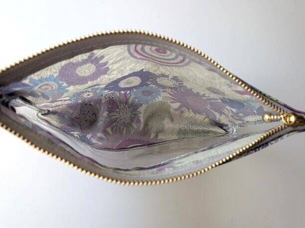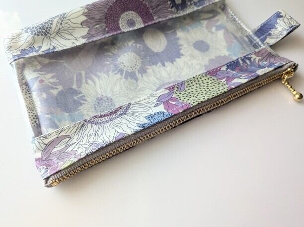横型-3 マチつき クリアポーチ スモールスザンナ リバティ ラミネート ♡大小さまざまなひまわり