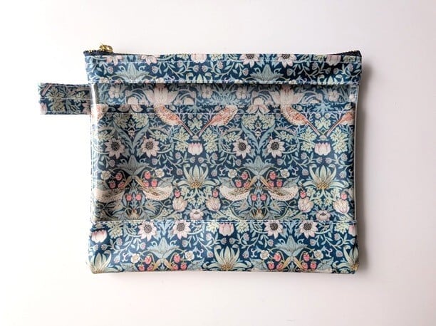 仕切りつきM-3 18.5×15 クリアポーチ ストロベリーシーフ リバティ ラミネート ♡ウィリアムモリス柄 いちご泥棒