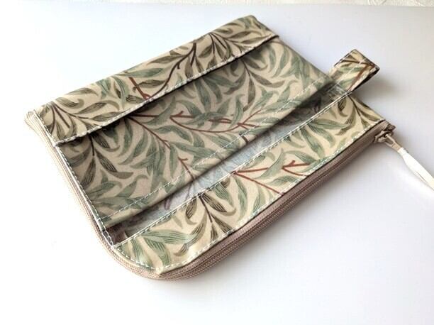 【現品限り・販売終了】仕切り付きA6 L字ファスナー お薬手帳 クリアポーチ ウィローボウ ウィリアムモリス ラミネート ♡