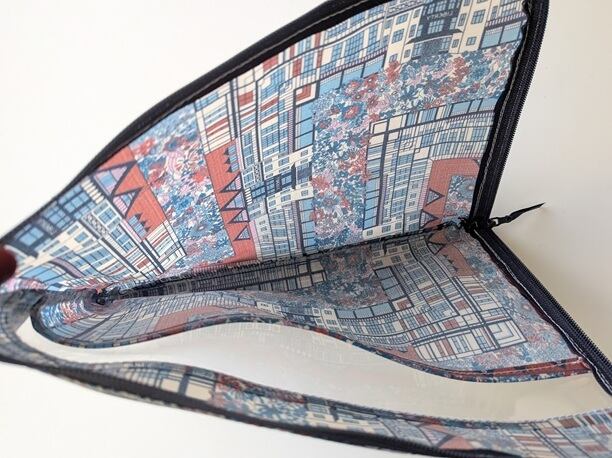特にこちらの柄は建物のモチーフが直線的なため、縦横のラインのゆがみが感じられやすいデザインです。