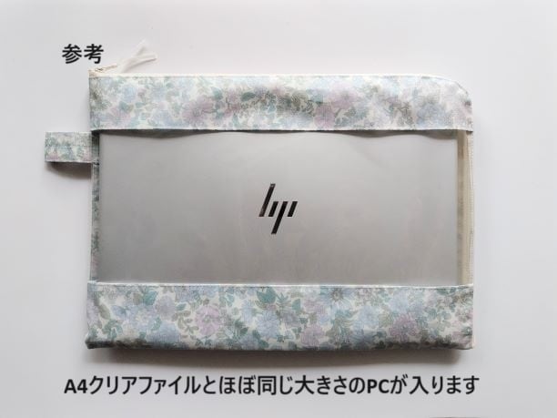 A4クリアファイルとほぼ同じ大きさのノートパソコンが入ります(画像のPCの大きさ:23×31×2センチ)
