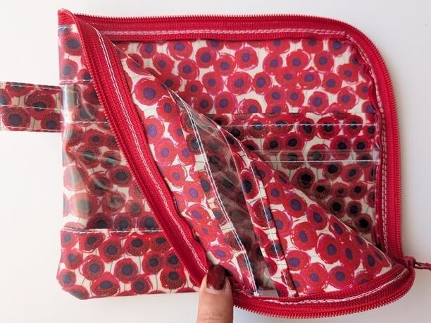 ★新商品★ カード入れ付き A6(お薬手帳)L字ファスナークリアポーチ 仕切り付き リバティ ラミネート ザンジーサンビーム