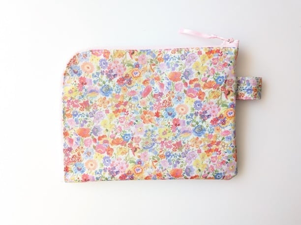 L字型にファスナーが開くA6サイズのポーチ