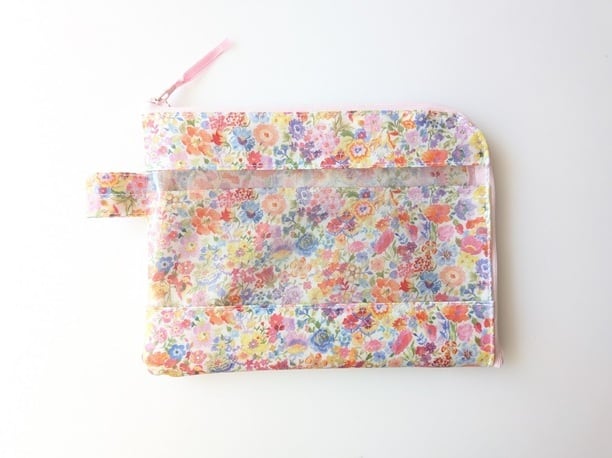 ★新商品★ カード入れ付き A6(お薬手帳)L字ファスナークリアポーチ 仕切り付き リバティ ラミネート クラシックガーデン