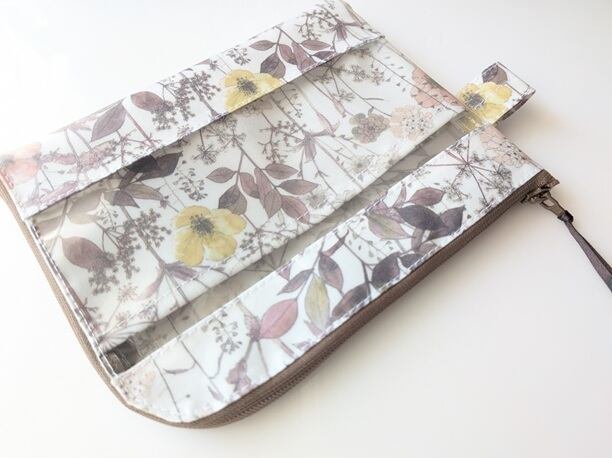★新商品★ カード入れ付き A6(お薬手帳)L字ファスナークリアポーチ 仕切り付き リバティ ラミネート イルマ