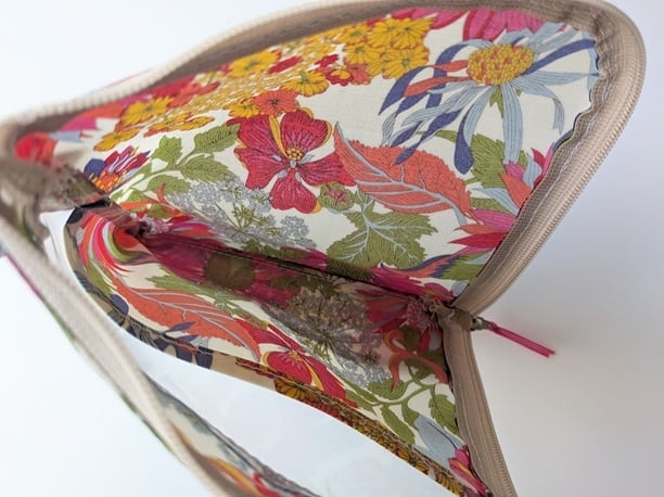 仕切付きXS L字ファスナー クリアポーチ アンジェリカガーラ リバティ ラミネート ♡大胆な大花