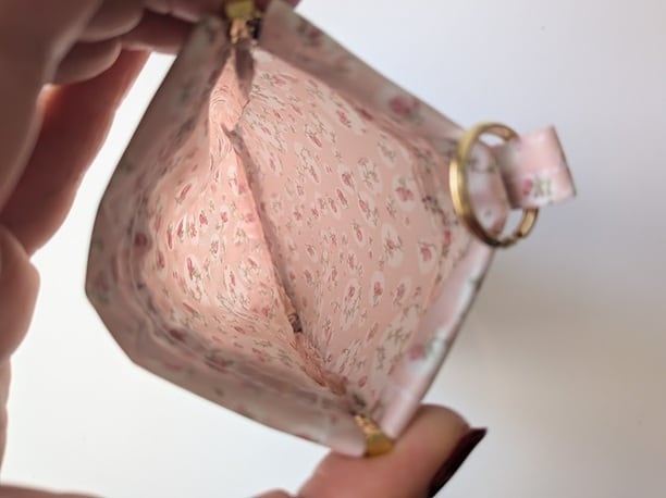 ポーチ部分に厚みのあるものを入れると、ゴミ入れ側がやや開きにくくなる場合があります。ティッシュ程度の厚みのものを入れていただくと、スムーズにお使いいただけます。