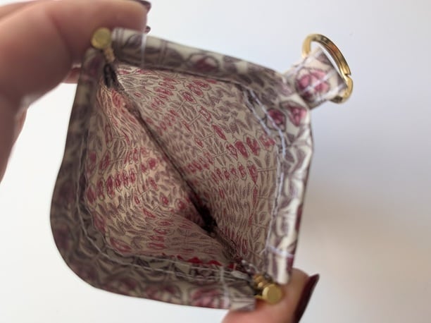 ポーチ部分に厚みのあるものを入れると、ゴミ入れ側がやや開きにくくなる場合があります。ティッシュ程度の厚みのものを入れていただくと、スムーズにお使いいただけます。