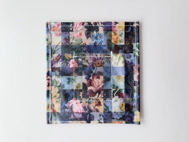 ポケットポーチ A6 アーカイブギンガム リバティ ラミネート ♡リバティのアーカイブに所蔵されているいくつかの手描き作品を繋ぎ合わせて作られたパッチワークの花柄 | リバティ×リバティ| 大人可愛いポーチ | オリジナルポーチ | 日本製